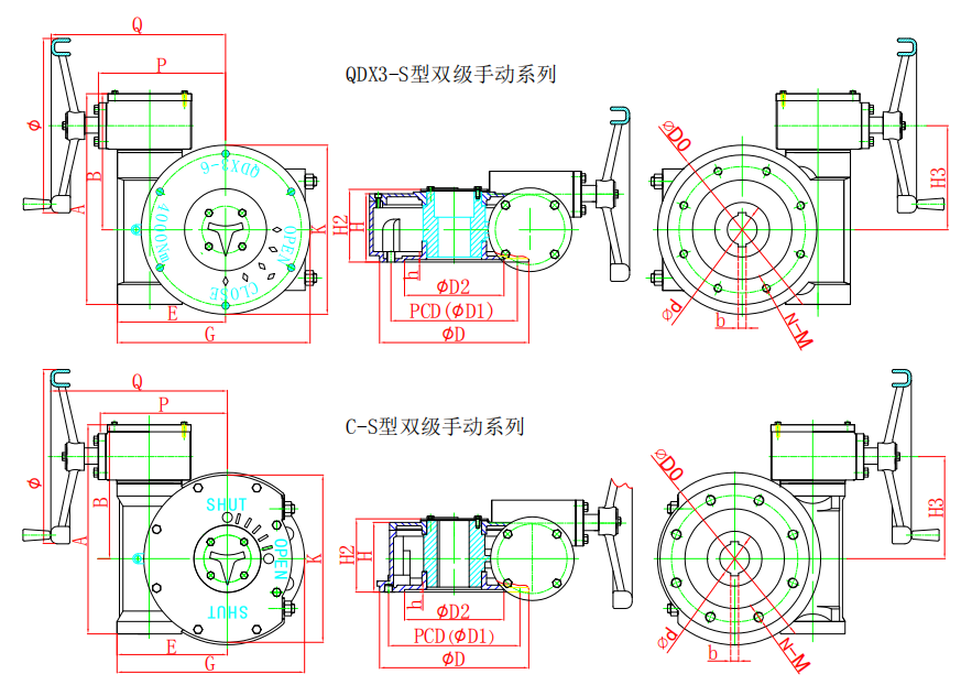 該系列是小蝸輪箱與大蝸輪箱對(duì)接組合成為二級(jí)傳動(dòng)蝸輪減速增壓機(jī)構(gòu),提高了機(jī)械總效率,輸入小力矩,開(kāi)動(dòng)大閥門(mén),使操作人員省力,每種型號(hào)提供多個(gè)傳動(dòng)比,特殊型可輸出360°無(wú)限多回轉(zhuǎn),能更好的匹配不同規(guī)格的閥門(mén)。